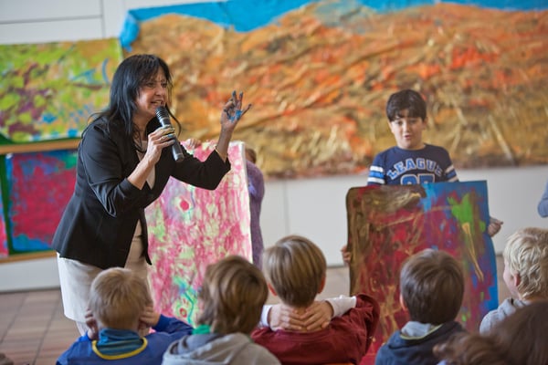 Ein Workshop-Vormittag rundete Teil I des Projekts vor der Winterpause ab. Alle Klassen der Jahrgangsstufen 1 bis 5 waren in drei Arbeitsblöcken eingeladen, mit Farbe und